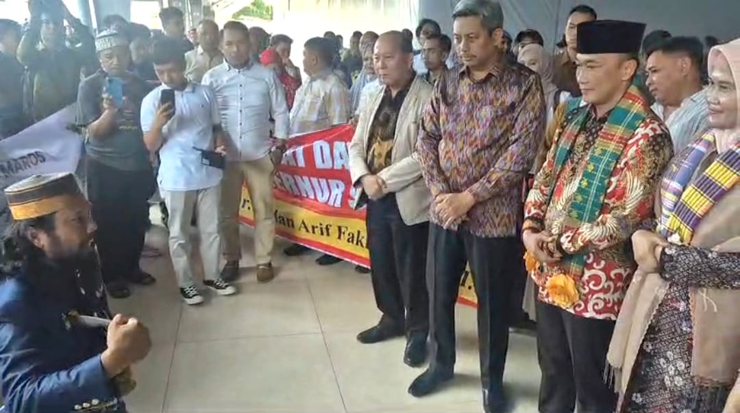 Penjemputan Pj Gubernur Zudan diwarnai dengan penyambutàn tradisi berupa Angngaru, yang menggambarkan sumpah setia rakyat kepada pemimpinnya.(*)