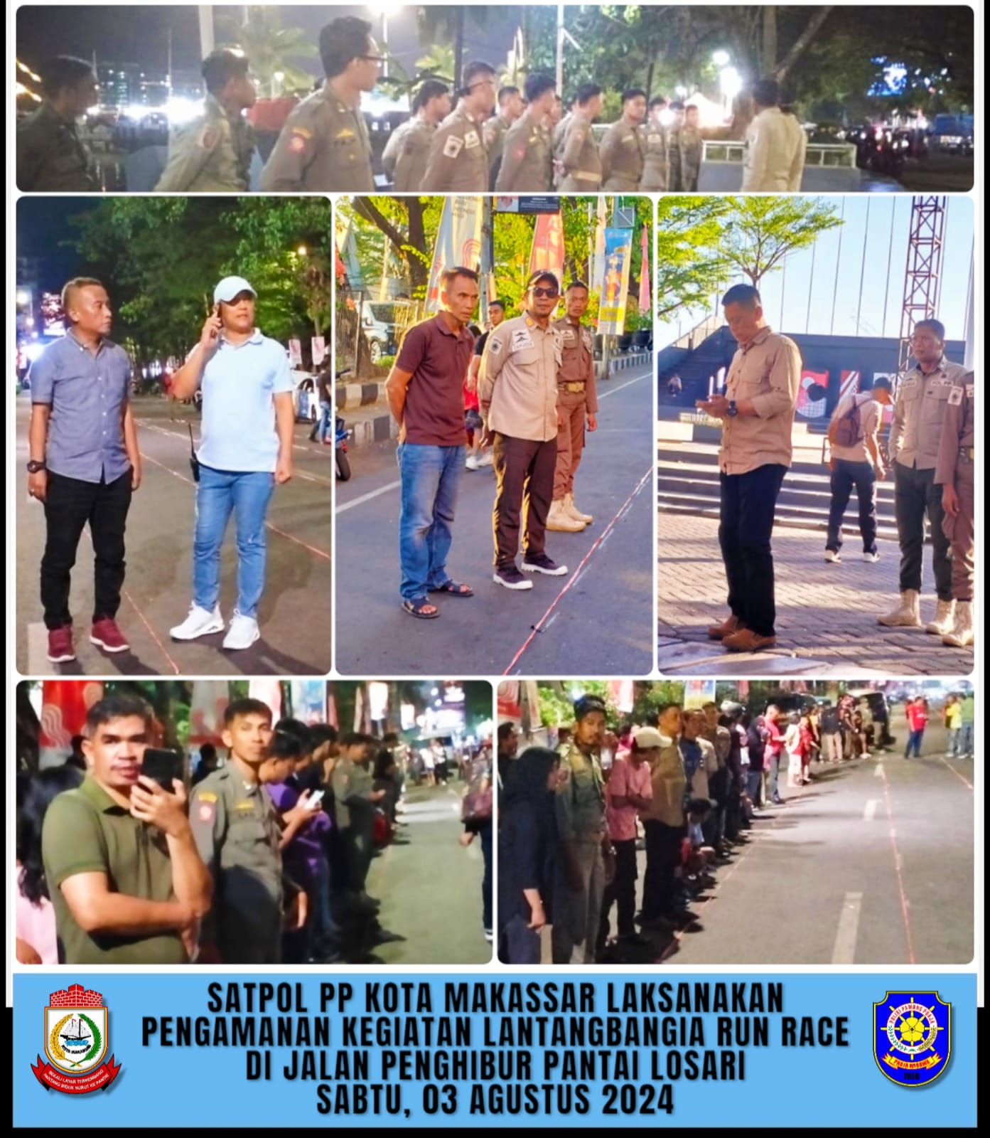 ZONASULSEL.COM., MAKASSAR ||Plt. Kasatpol PP Kota Makassar, Hasanuddin, S.STP., M.Si., menurunkan puluhan Personel, dalam rangka menjaga keamanan dan ketertiban Lantangbangia Run Race, Sabtu (03/08/2024).